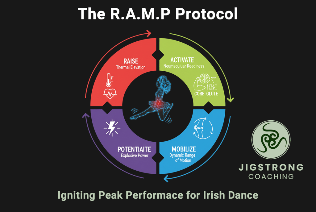 Like the 800m, Irish dancing sits at the crossroads of speed, power, and endurance. It is a hybrid event: highly technical, neuromuscularly demanding, and powered by both anaerobic and aerobic systems. That’s exactly why the warmup is not optional; it functions as both performance enhancer and injury prevention.